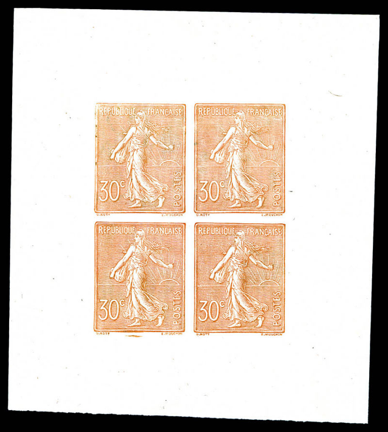 2637 image30c Semeuse Lignée en BLOC de 4, Epreuve en brun-rouge sur chine, TTB. R. (certificat) Qualité: (*) (Image)
