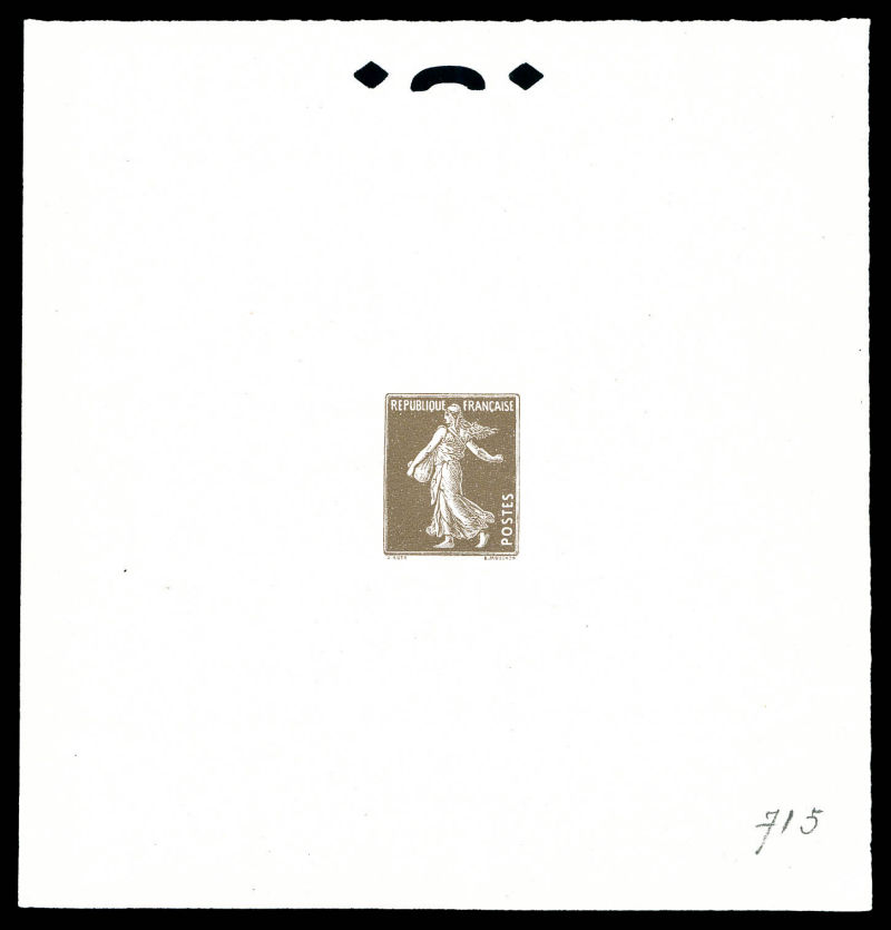 2636 imageSemeuse: épreuve collective OLIVE de 2 valeurs avec faciale évidée, annotation '7' en haut à droite. SUP (certificat) Qualité: (*) Cote: 450 euros (Image)