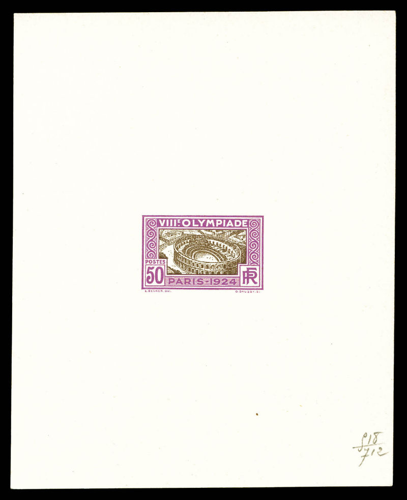 2641 imageN°186A, (N°Maury), Non émis, Arènes de Nimes de 1924, épreuve d'atelier en violet et brun avec annotation '518/712' au crayon. SUP. R. (certificat) Qualité: (*) (Image)