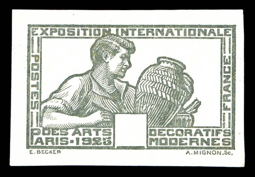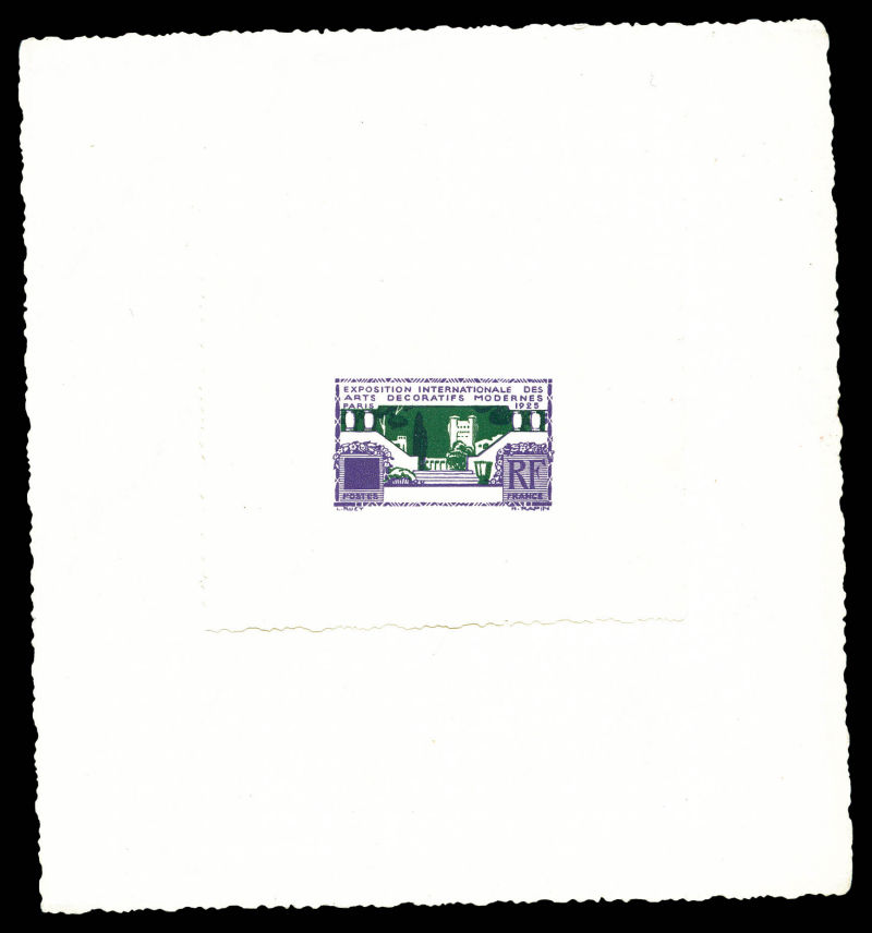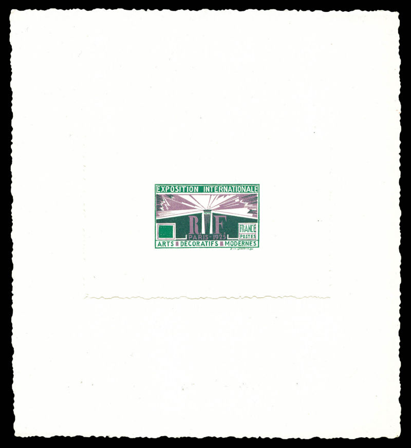 2645 imageN°213, 1924, Expo des arts décoratifs: épreuve de couleur 'L'Architecture' sans faciale en violet et vert. SUPERBE. R.R. (certificat) Qualité: (*) (Image)