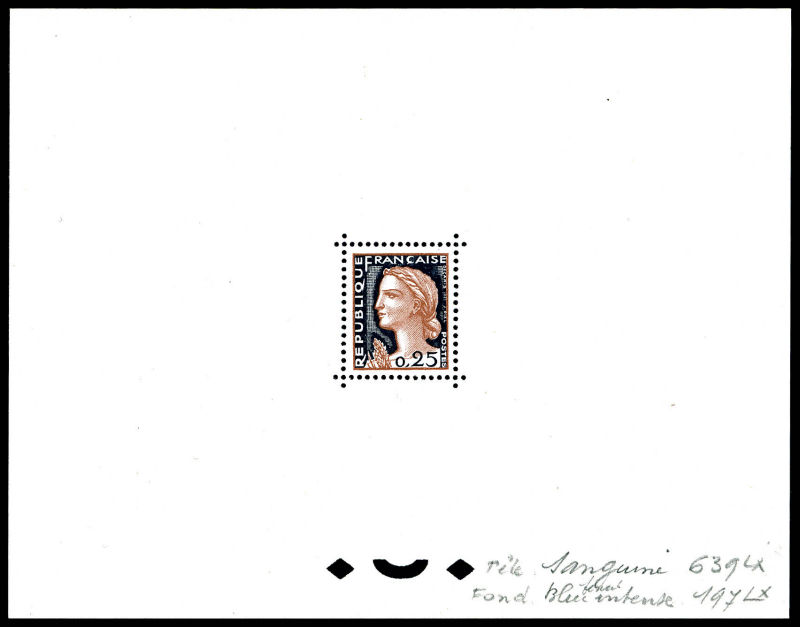 2651 imageN°1263, 25c Decaris, épreuve de couleur dentelée en brun et noir. SUP. R.R.R (certificat) Qualité: (*) (Image) (image2) (All Images)