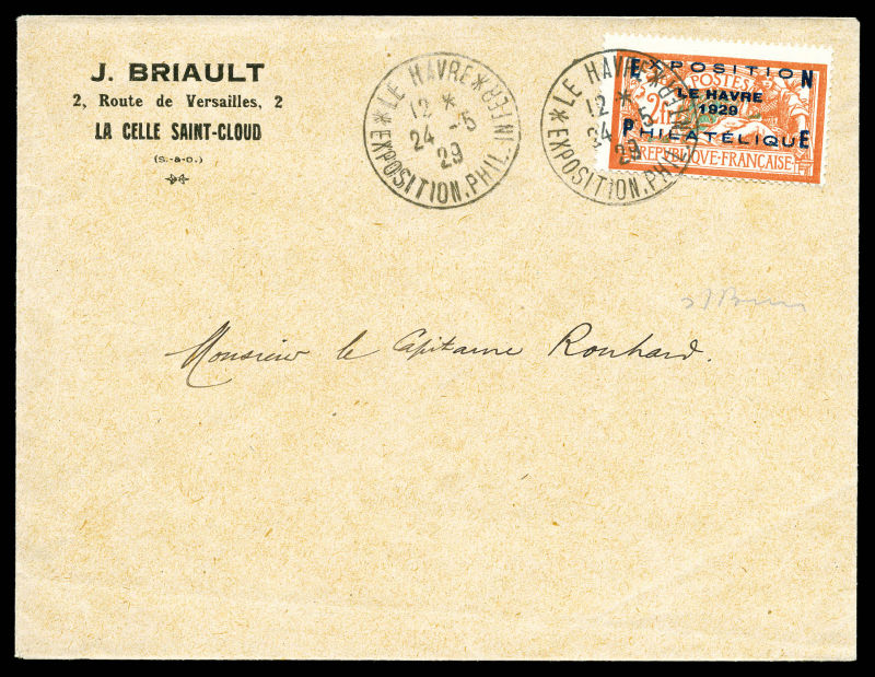 2660 imageN°257A, (cote Maury), Exposition du Havre 1929 sur lettre avec cachet de l'expo, SUP (signé Brun/certificat) Qualité: Oblitéré Cote: 1000 euros (Image)