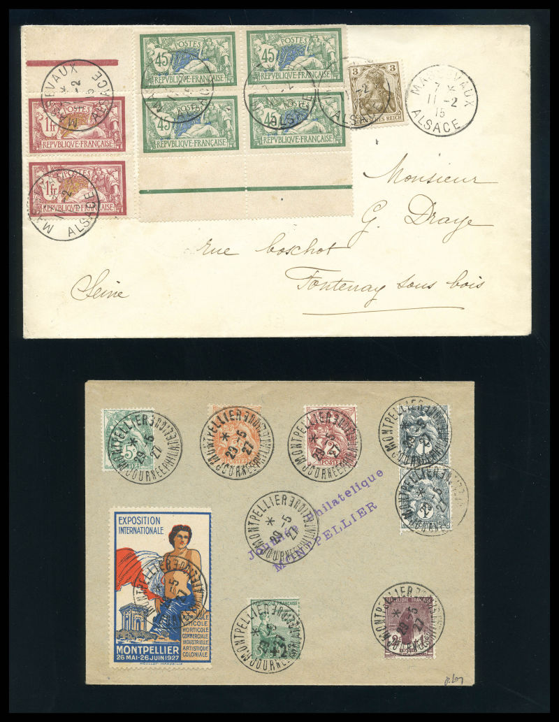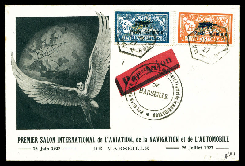 2665 imageN°1/2, Paire Avion survolant Marseille sur enveloppe illustrée de l'exposition, TB (signé Mayer/certificat) Qualité: Oblitéré Cote: 700 euros (Image)