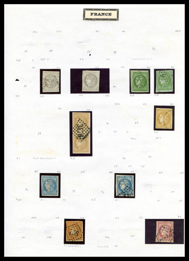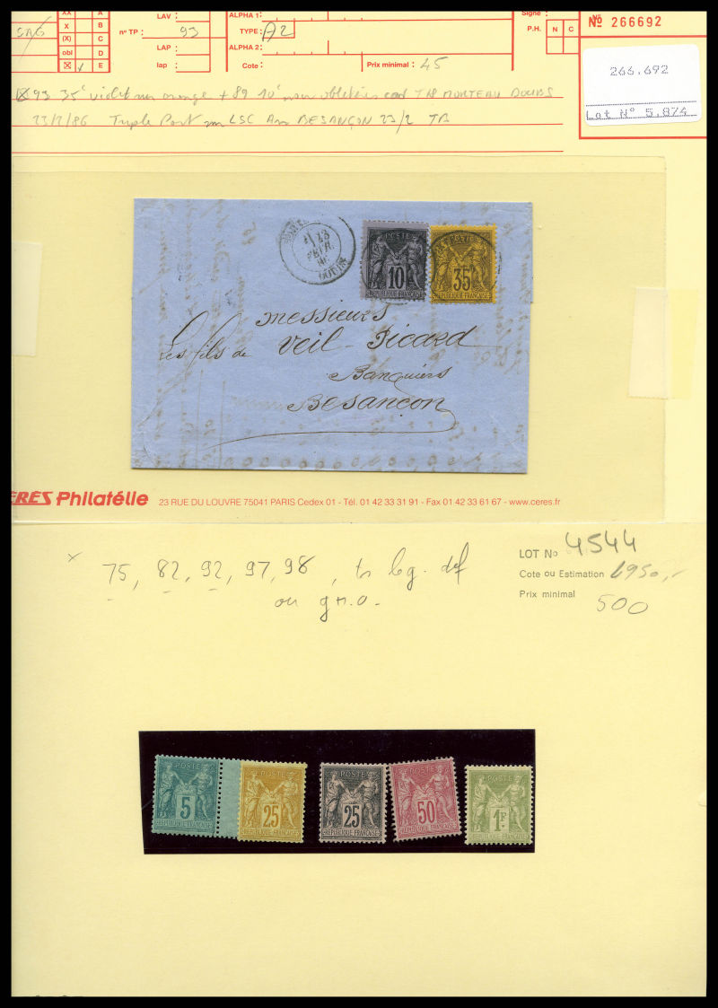 2669 imageLot de timbres neufs et obl présenté sur 47 fiches de présentation dont nuances, oblitérations, lettres, épreuves et timbres de colonies. FORTE COTE. B/TB Qualité: N&Obl (Image) (image2) (image3) (image4) (image5) (image6) (image7) (image8) (image9) (image10) (image11) (image12) (image13) (image14) (image15) (image16) (All Images)