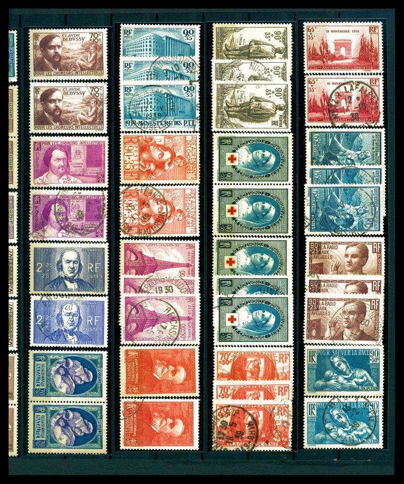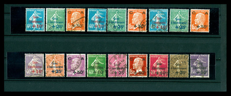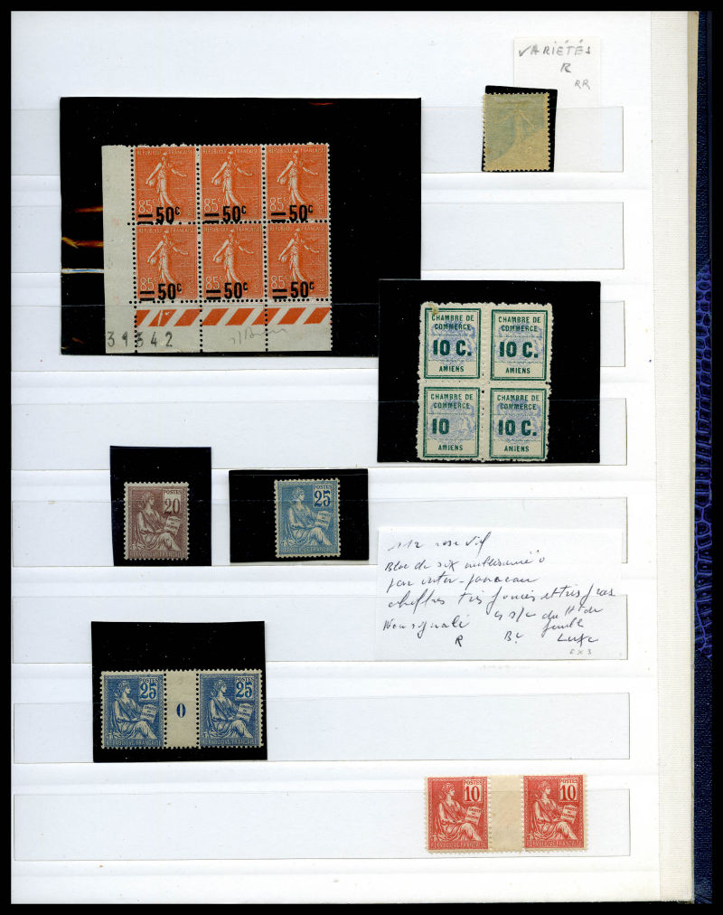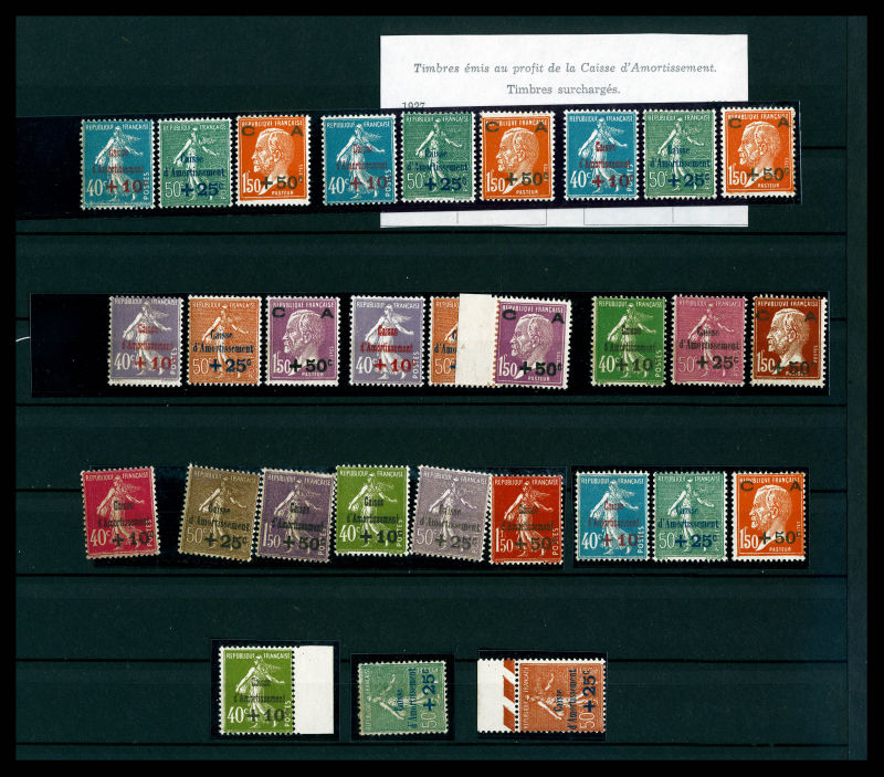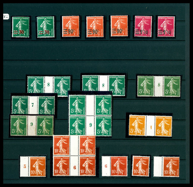 Poste + timbres à surtaxe présentés en 2 classeurs, classement Thiaude + double et variétés. Quelques bonnes valeurs ** signées 1er choix avec Merson, Mouchon, Semeuse, Orphelins dont n°119/122, n°124/128, n°148/155... état B à SUP Qualité: N&Obl (Image) (image2)