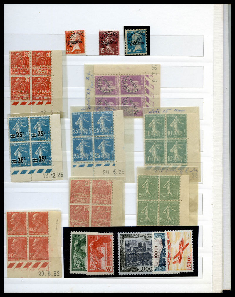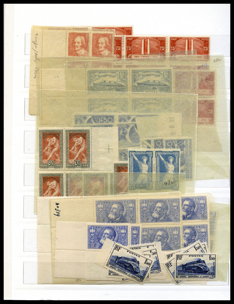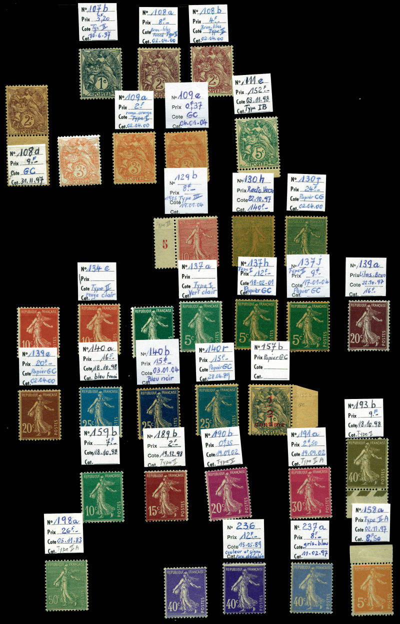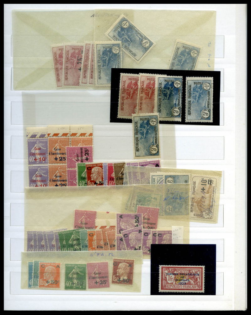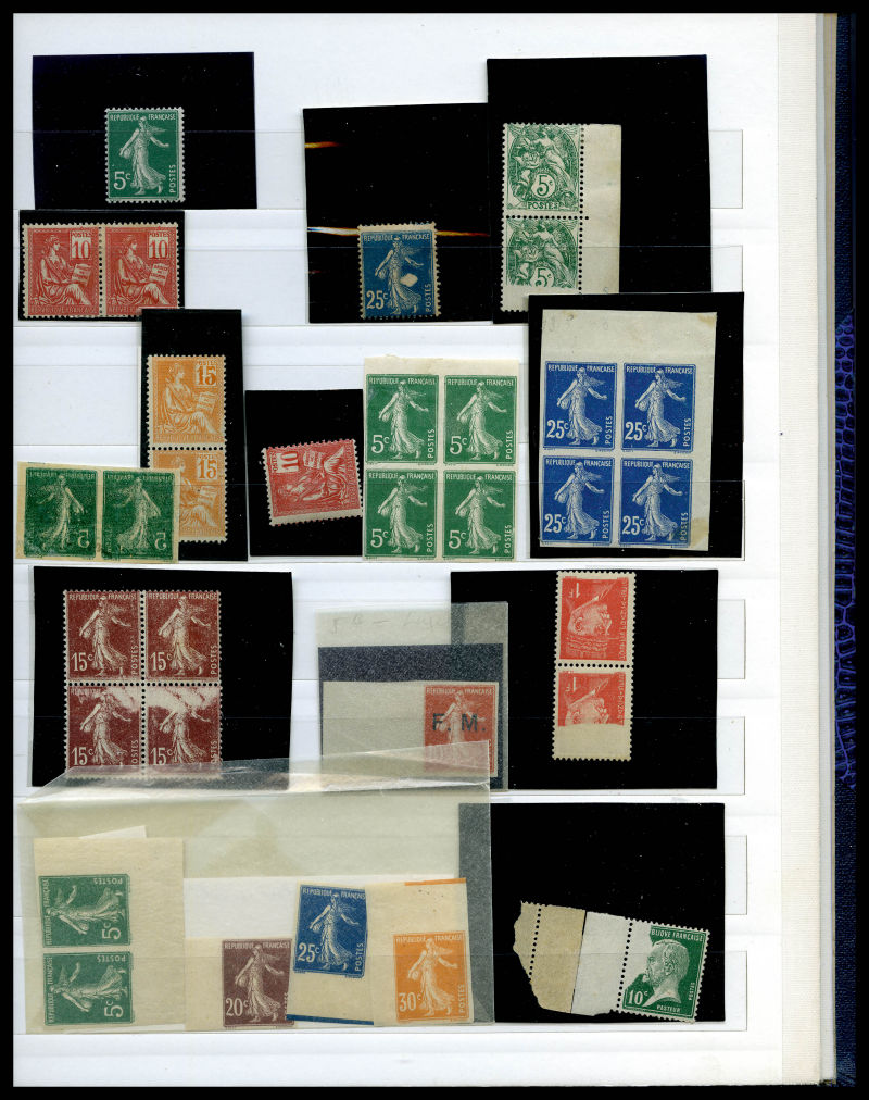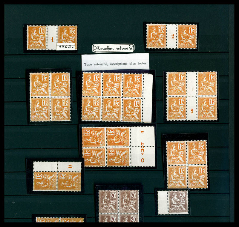 Lot de timbres neufs en majorité ** dont Mouchon, Merson, Semeuse, par quantité avec de nombreux blocs et panneaux, comemoratifs, Orphelins, congrès de Bordeaux, Caisse d'Amortissement, coins datés, Poste Aèrienne, variétés, non dentelés, Cours