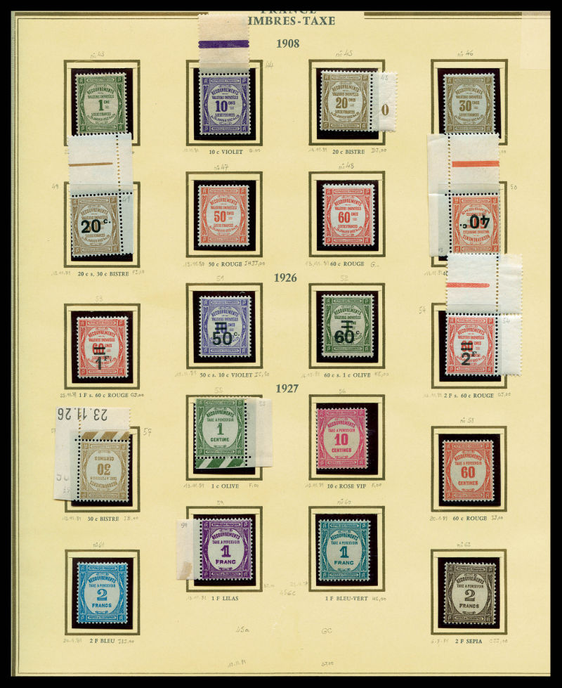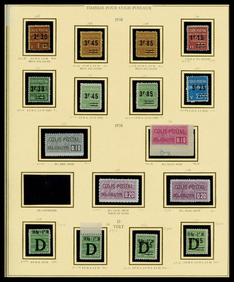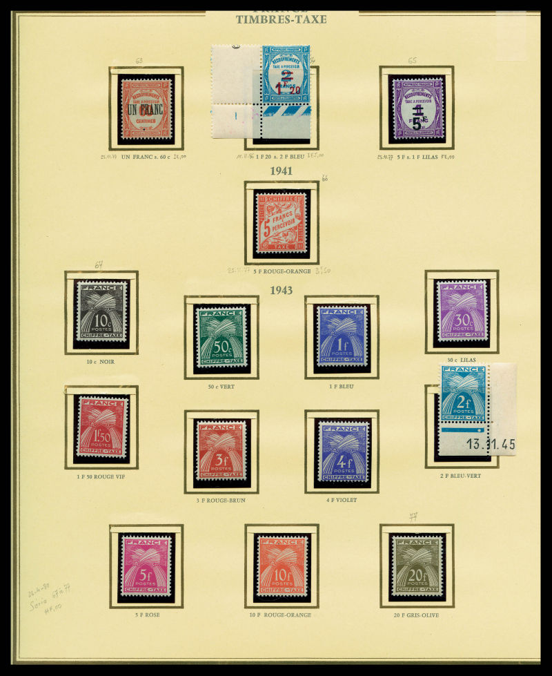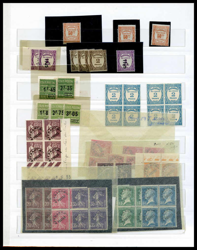 FACIALE: 2 chemises de Francs, tous fragments de feuille (qques rares Taxe et préo). FACIALE 2510 € Qualité: ** (Image)