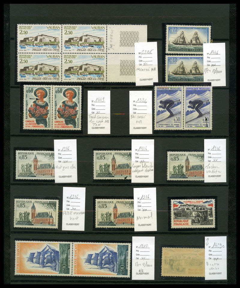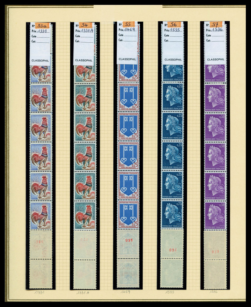 Poste, PA, Blocs, Carnets: collection de timbres neuf** presentée dans 9 classeurs Safe préimprimés avec étuis. Forte faciale, SUP / Faciale : 4300€ Qualité: **