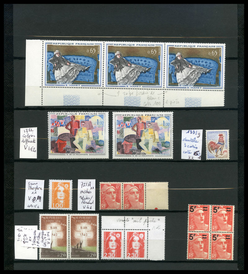 FACIALE: 1 Album de Francs dont Blocs, Carnets, tous par multiples (dont qques rares préo et unesco). FACIALE 1675 € Qualité: ** (Image) (image2)