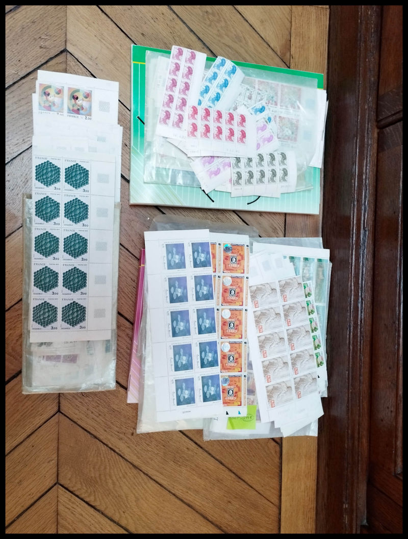 FACIALE: 1 Petit carton de Francs et Euros dont PA, Tableaux, tous par multiples (qques unesco) . FACIALE 1523 € Qualité: ** (Image)