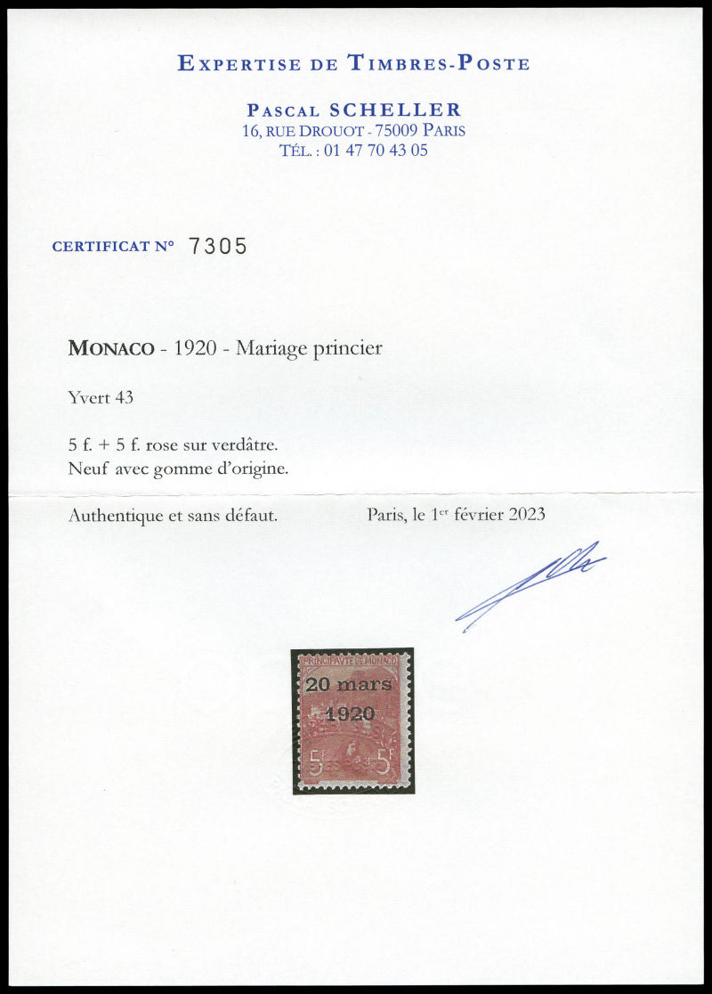 Mariage, 5F +5F rose sur verdâtre, grande fraîcheur, SUPERBE (signé/certificats) Qualité: * Cote: 8330 euros (Image) (image2)