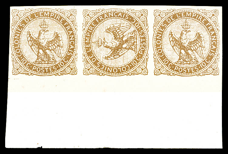 2766 imageN°3d, 10c bistre-brun, timbre couché au centre d'une bande de trois bas de feuille, très jolie couleur foncé. SUPERBE (certificat) Qualité: * (Image)