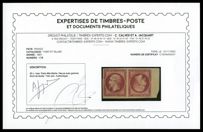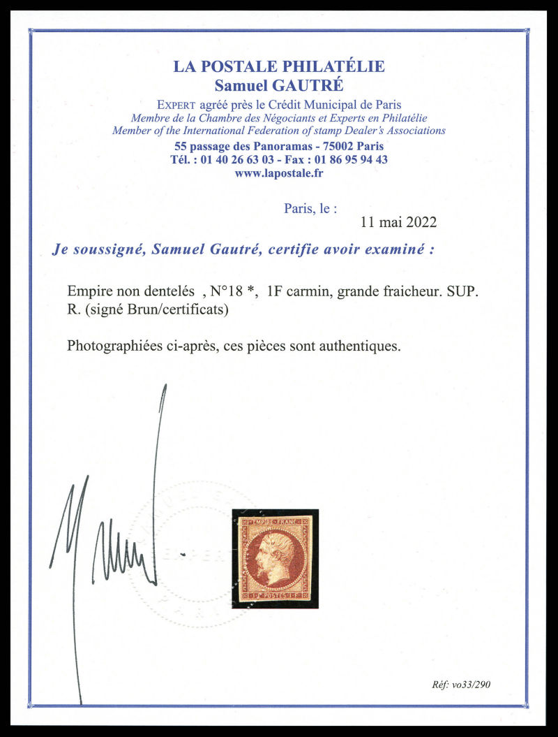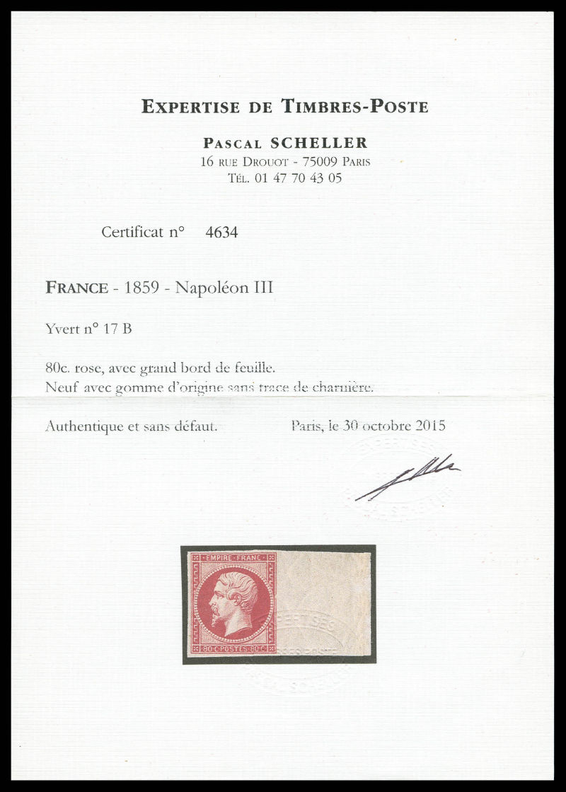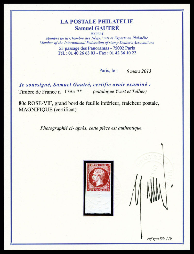 grande fraicheur. SUP. R. (signé Brun/certificats) Qualité: * Cote: 9000 euros (Image) (image2)