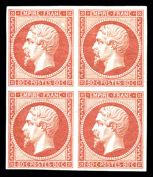 en bloc de quatre, fraîcheur postale, exceptionnel. R.R.R. (signé Brun/certificats) Qualité: * Cote: 47500 euros (Image) (image2)