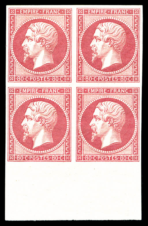 carmin-rose, impression de 1862 en bloc de quatre bord de feuille latéral gauche, fraîcheur postale, SUPERBE (certificat) Qualité: ** (Image)
