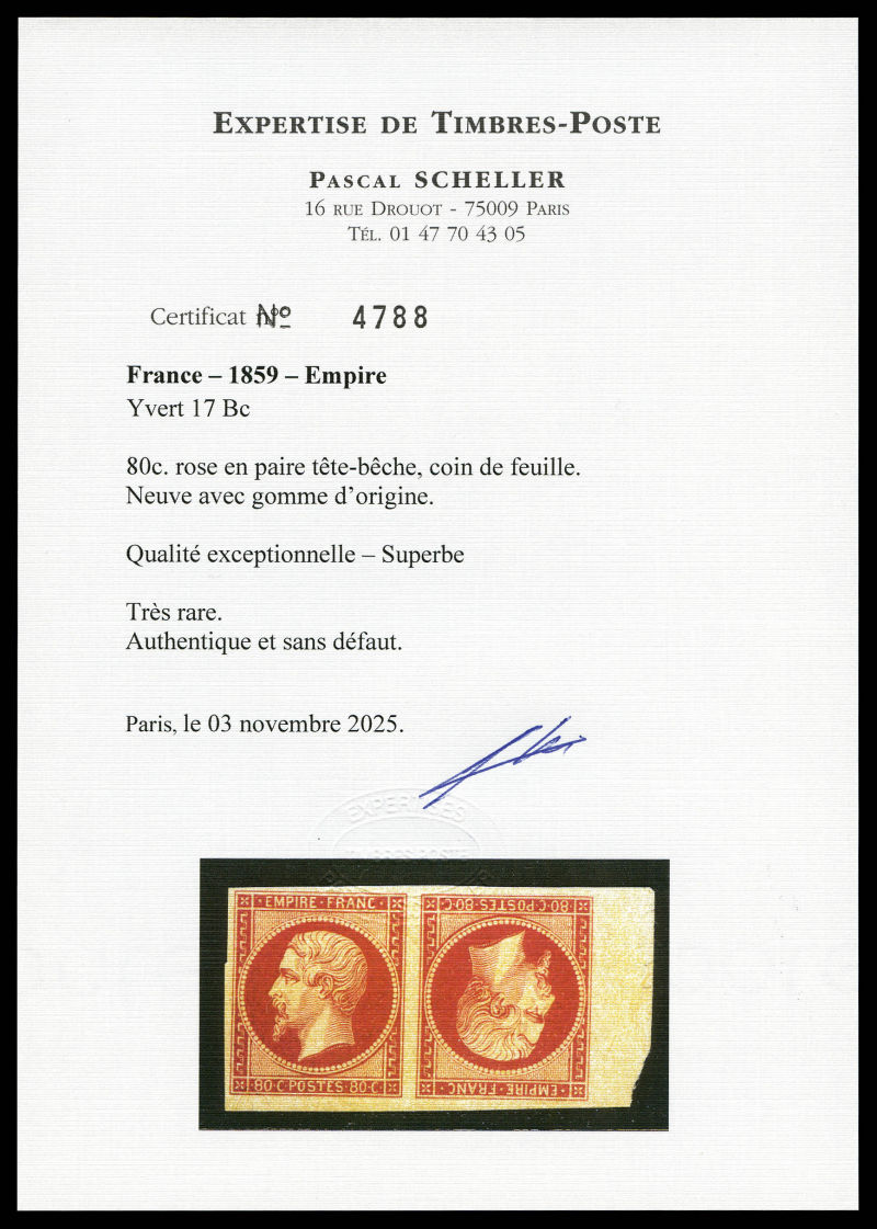 en paire tête-bêche, coin de feuille, fraîcheur postale, quasi**. Position 150 dans le panneau droit. Plus belle des 2 paires Tête-bêche neuves connues. Qualité exceptionnelle. SUPERBE. R.R.R. (signé Margues/Certificats Gautré/Scheller/Calves)