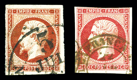 carmin, impression de 1862. SUP (signé Brun/certificat) Qualité: * Cote: 3000 euros (Image)