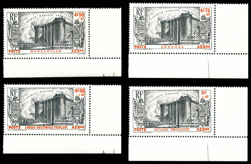 anniversaire de la Révolution, la série complète de 120 valeurs + Avion, les 8 valeurs, TTB (certificat) Qualité: * Cote: 2312 euros (Image)