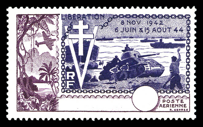 anniversaire de la Libération non émis: en lilas et brun sans faciale ni nom du territoire. SUP. R.(certificat) Qualité: ** (Image)