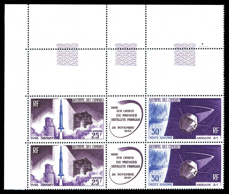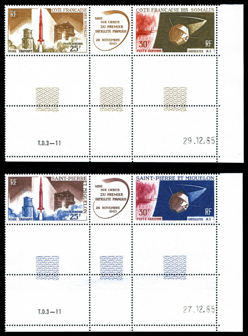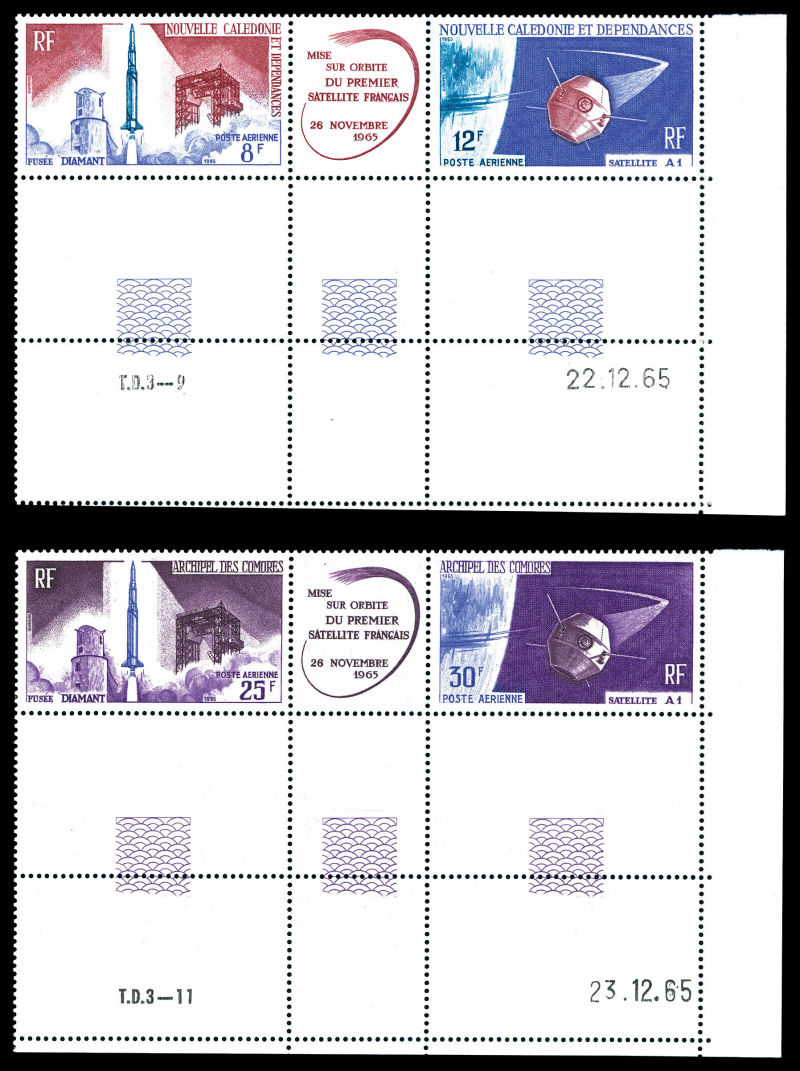 complete Lancement du 1er Satellite Francais, les 6 triptyques coin de feuille datés. TB Qualité: ** Cote: 164 euros (Image) (image2)