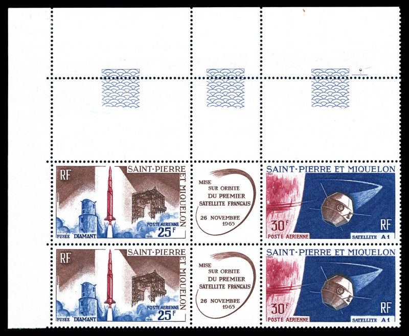 1er Satellite Francais: série de 4 timbres avec vignettes centrales cdf. TB Qualité: ** Cote: 328 euros (Image) (image2)