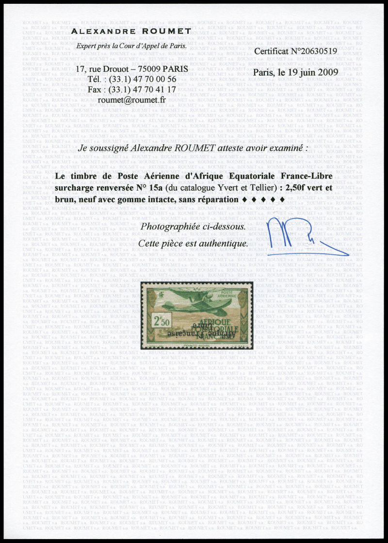 surcharge renversée et à cheval. SUP (signé Calves/certificats) Qualité: ** (Image) (image2)