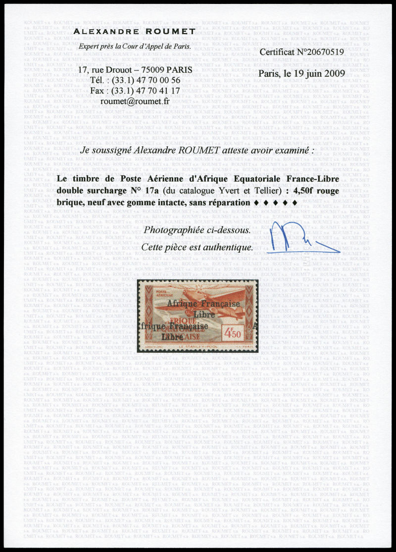 Surcharge AFL en noir et surcharge '=50f' absente, tirage 25 exemplaires. SUP. R. (certificat) Qualité: * Cote: 1900 euros (Image)