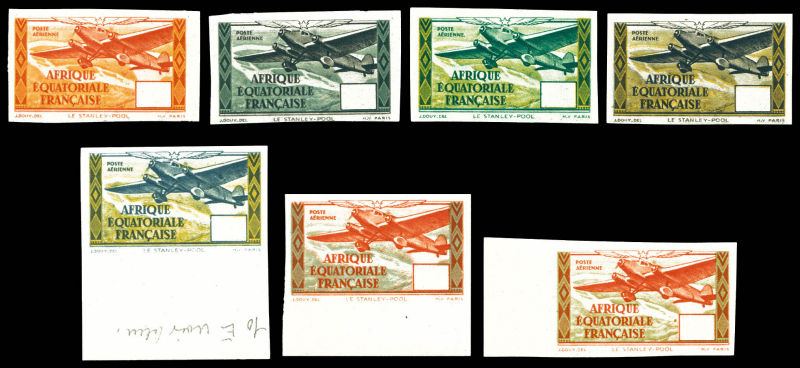 Série Tchad au Rhin en 7 épreuves d'Artiste en bleu outremer sur papier filigrané (17x 21,5 cm), R.R.R (certificat) Qualité: (*) (Image)