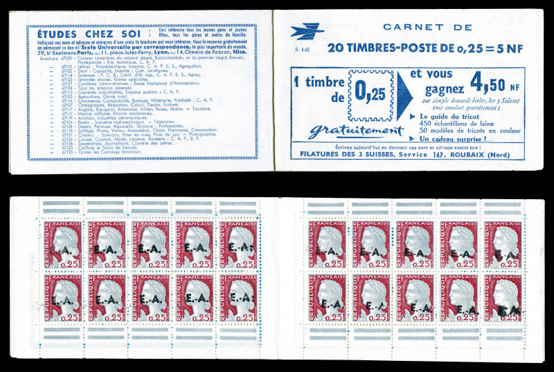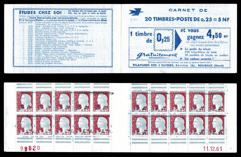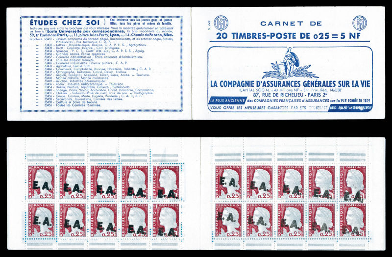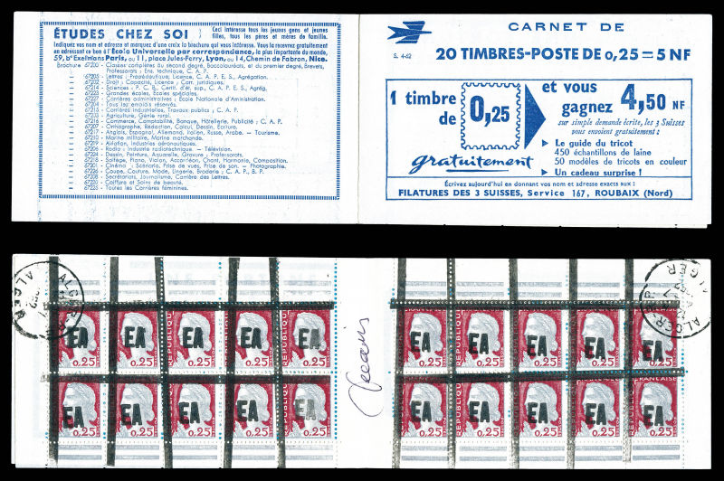 2907 imageN°355-C1, Série 04-61, Decaris 25c gris et carmin surcharge départementale 'ORAN RP' (type 9-2), carnet de 8 timbres. SUP. R. (certificat) Qualité: ** (Image)
