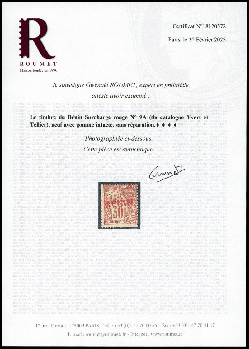 2920 imageN°9A, 30c brun surcharge rouge Type II, fraîcheur postale. SUP. R. (certificats) Qualité: ** Cote: 2950 euros (Image) (image2) (All Images)