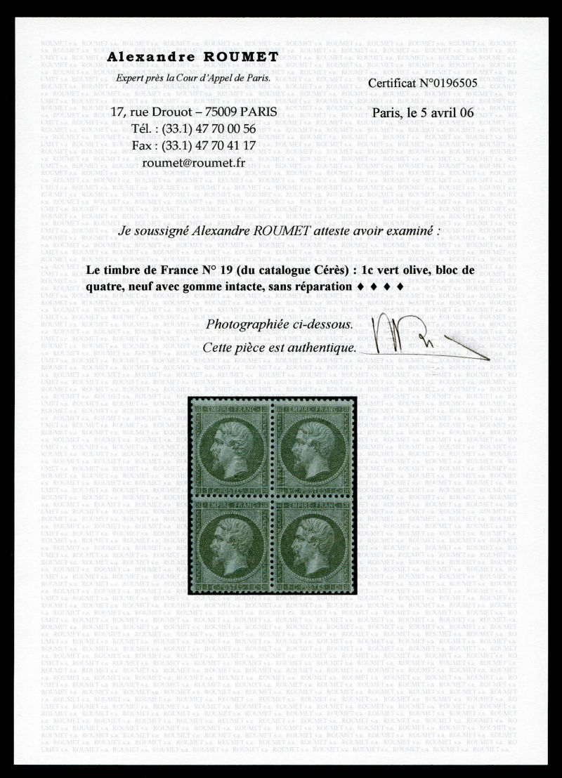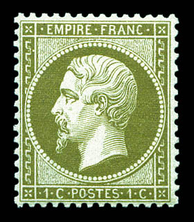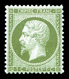 300 imageN°19d, 1c olive, GRAND C dans le cartouche supérieur, tenant à normaux, avec gomme intacte quasiment ** (2ex**), très bon centrage, fraîcheur postale. SUP. R.R. (certificat) Qualité: ** (Image)