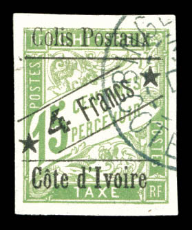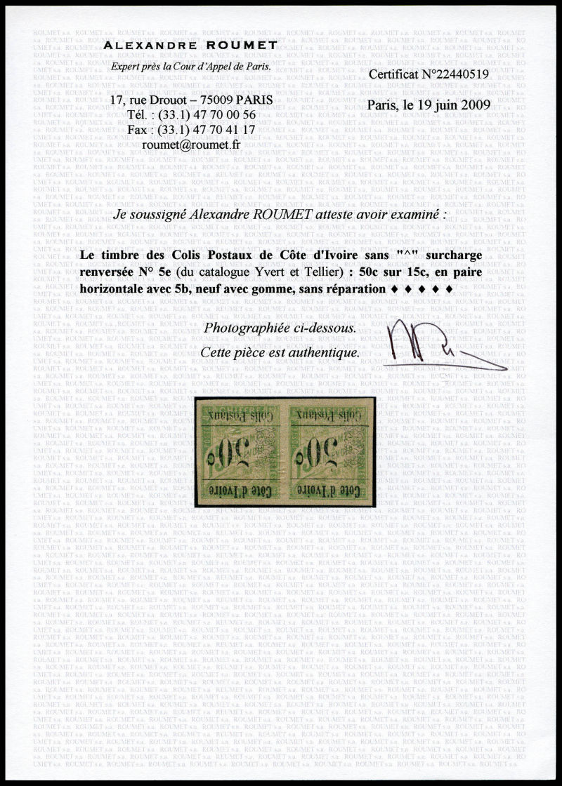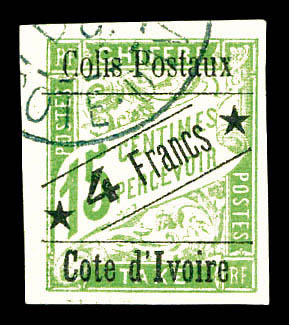 15c vert, surcharge renversée sans accent circonflexe sur le 'o' de 'Côte' tenant à normal. TTB (certificats) Qualité: * Cote: 650 euros (Image) (image2)