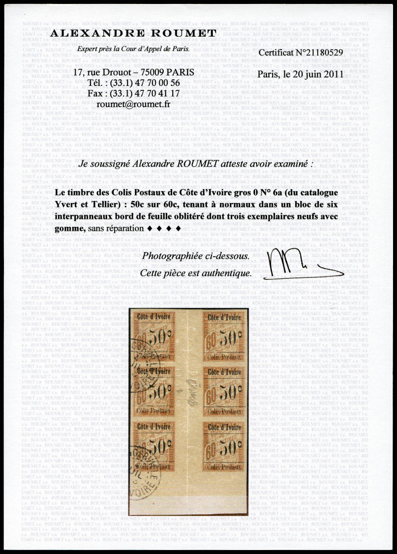 avec '0' large tenant à normaux dans un bloc de 6 interpanneaux bord de feuille dont 3 exemplaires neufs. TTB (certificats) Qualité: Oblitéré Cote: 728 euros