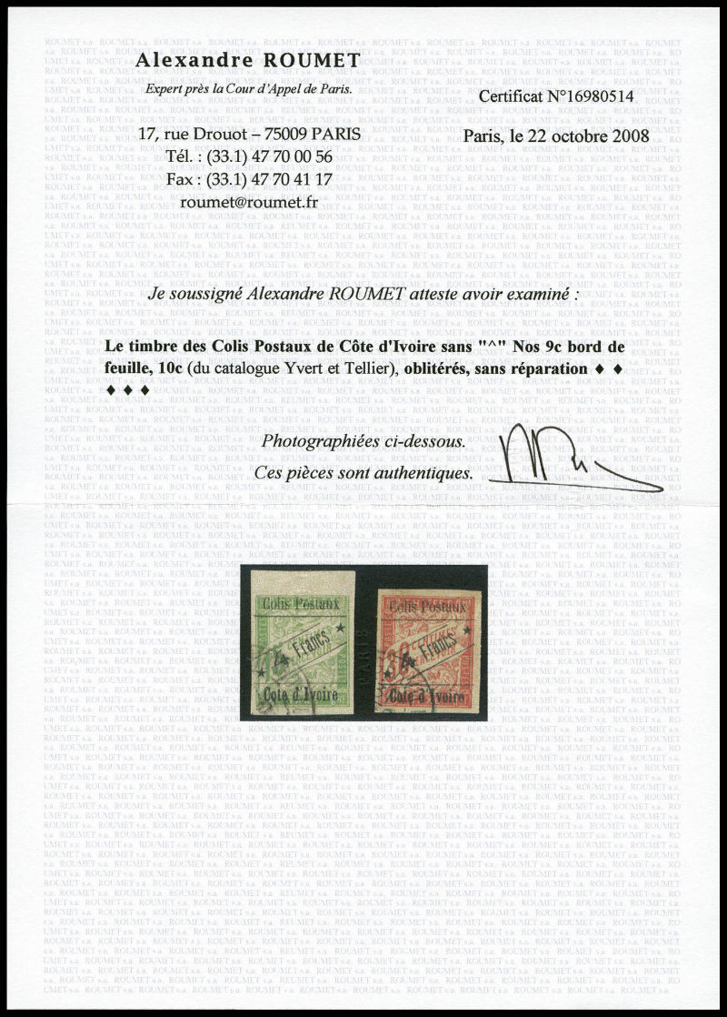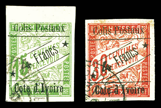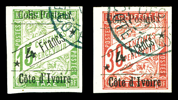 2 valeurs avec petites étoiles sans accent circonflexe sur le 'o' de Côte. TTB (signés Calves/certificats) Qualité: Oblitéré Cote: 770 euros (Image) (image2)