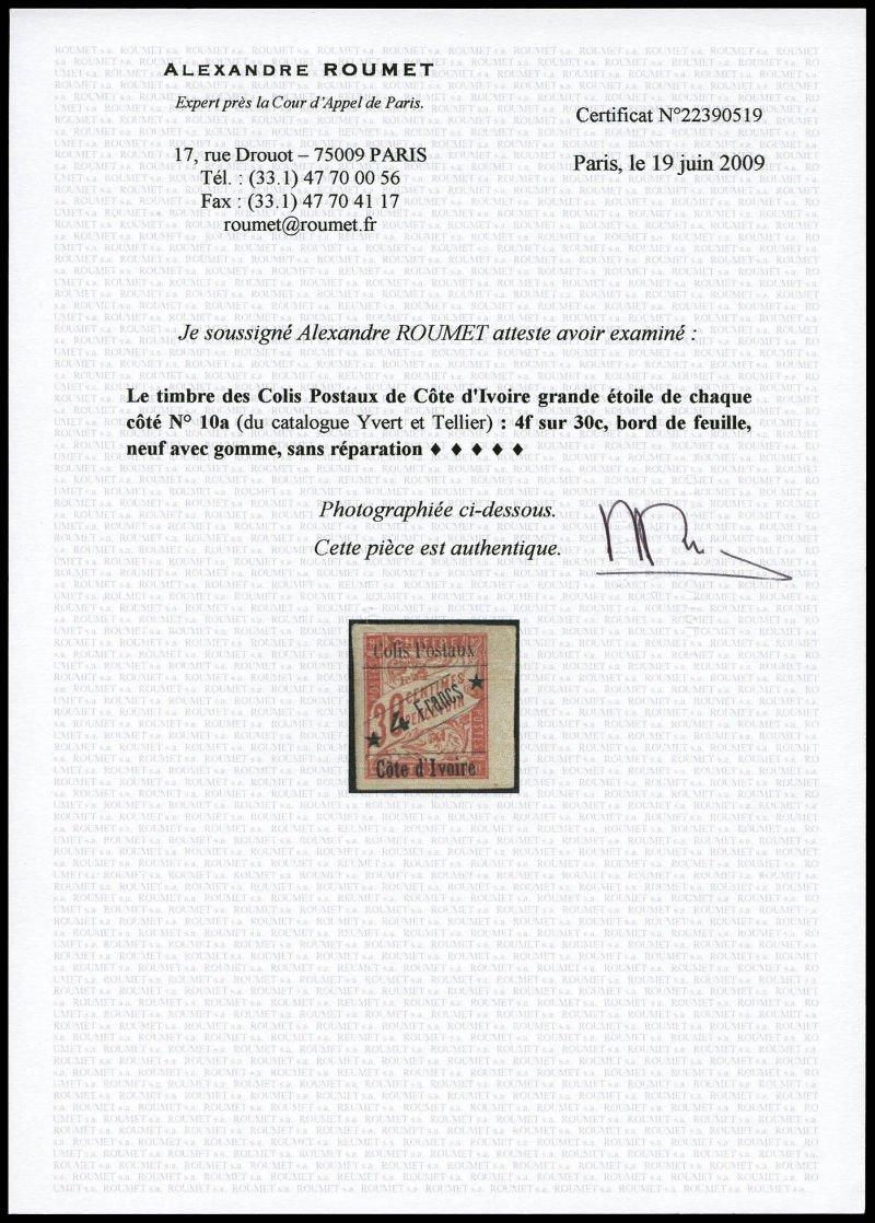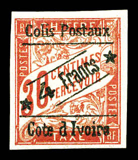 30c carmin, 2 grandes étoiles et sans accent circonflexe sur le 'o' de Côte. TTB (certificat) Qualité: * Cote: 600 euros (Image)