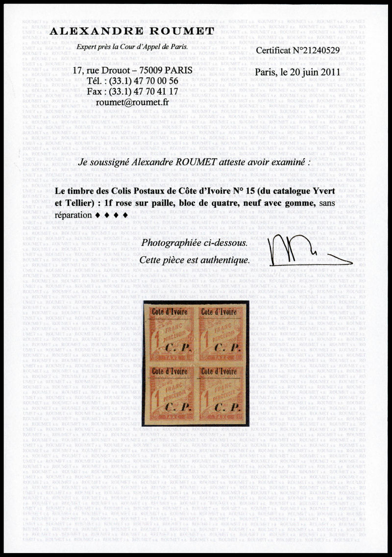 3084 imageN°15, 1f rose s paille en bloc de 4. TB (certificat) Qualité: * Cote: 260 euros (Image) (image2) (All Images)