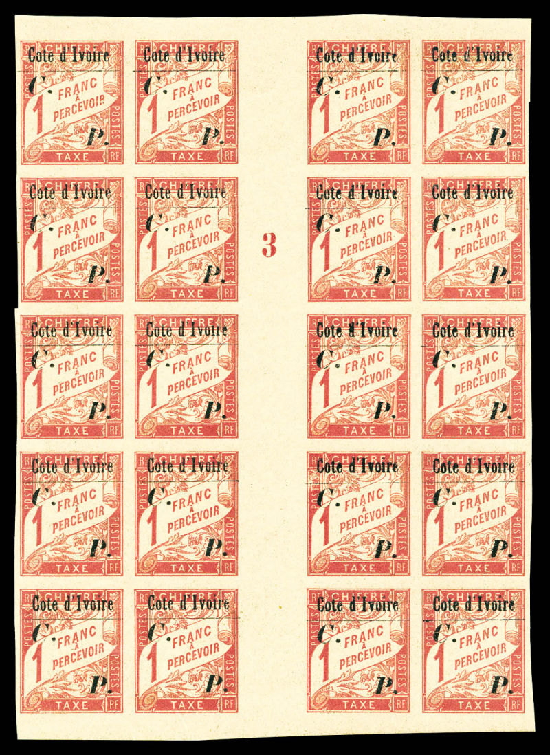 3087 imageN°19, 1f rose sur paille en bloc de 20 exemplaires avec interpanneau et millésime '3'. SUP (certificat) Qualité: ** Cote: 6140 euros (Image)