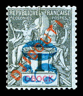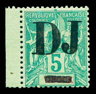 3097 imageN°1a, 5c vert: Sans barres sur OBOCK. SUP. R. (certificat) Qualité: Oblitéré Cote: 1050 euros (Image)