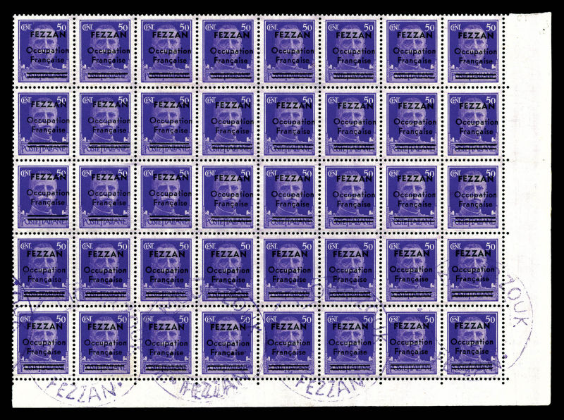 3156 imageN°1, 50c violet, panneau de 40 exemplaires dont 16 oblitérés, coin de feuille. SUP (signé Calves/certificats) Qualité: ** Cote: 4440 euros (Image) (image2) (All Images)