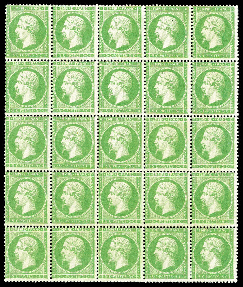 jaune sur verdâtre en bloc de 25 exemplaires (8 ex*), fraîcheur postale. SUPERBE. R.R. (signé Calves/certificat) Qualité: ** (Image)