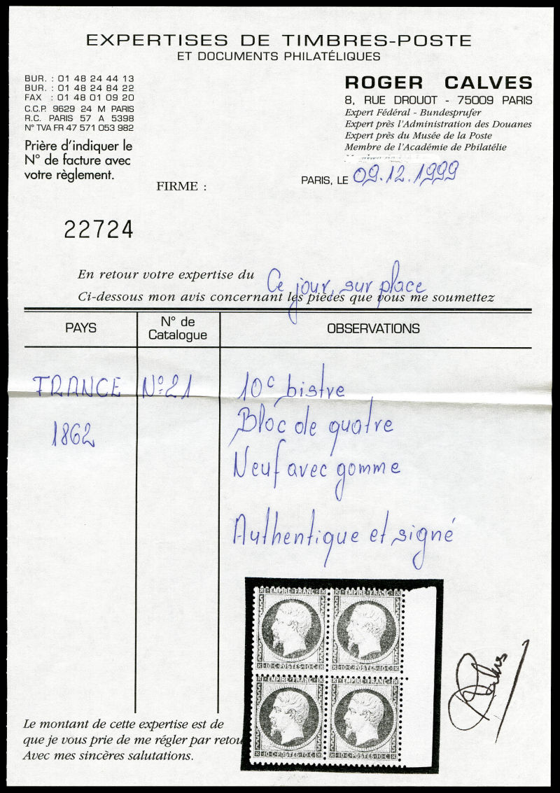 bistre, très bon centrage, frais. SUP (signé Calves/certificat) Qualité: * (Image)
