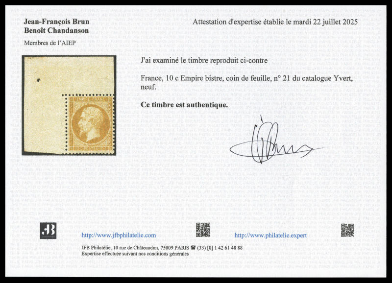 bistre-brun bdf, fraîcheur postale. SUP (certificat) Qualité: ** (Image)