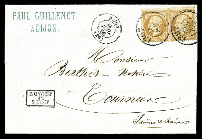 x 2 exemplaires oblitérés càd de bureau de Passe '1307' (Dijon) sur lettre pour Tournus. TTB (certificat) Qualité: Oblitéré (Image) (image2)