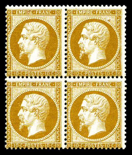 bistre-brun, bloc de 20 exemplaires (3ex*), bas de feuille avec croix de repère, QUALITÉ EXCEPTIONNELLE, FRAÎCHEUR POSTALE, GRANDE RARETÉ DE LA PHILATÉLIE FRANCAISE, SUPERBE (signé/certificat) Qualité: ** (Image)