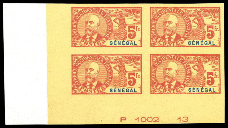 3342 imageN°17, 5f rouge sur paille non dentelé en bloc de quatre cdf numéroté. SUP (certificat) Qualité: (*) (Image)