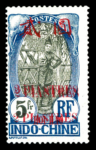 3348 imageN°81a, 2 pi sur 5F bleu: Triple surcharge. SUP. R. (signé Brun/certificat) Qualité: * Cote: 950 euros (Image)