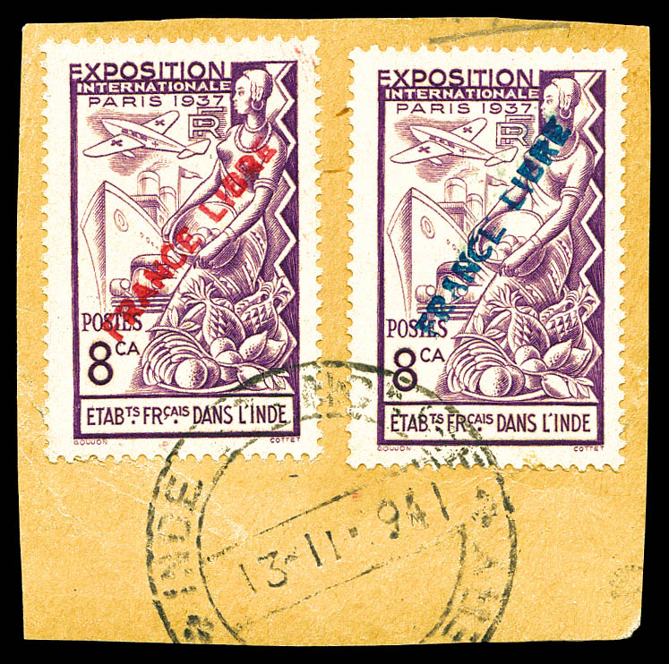 3357 imageN°162a, France-Libre. Surcharge bleue. TB (certificat) Qualité: Oblitéré Cote: 370 euros (Image)