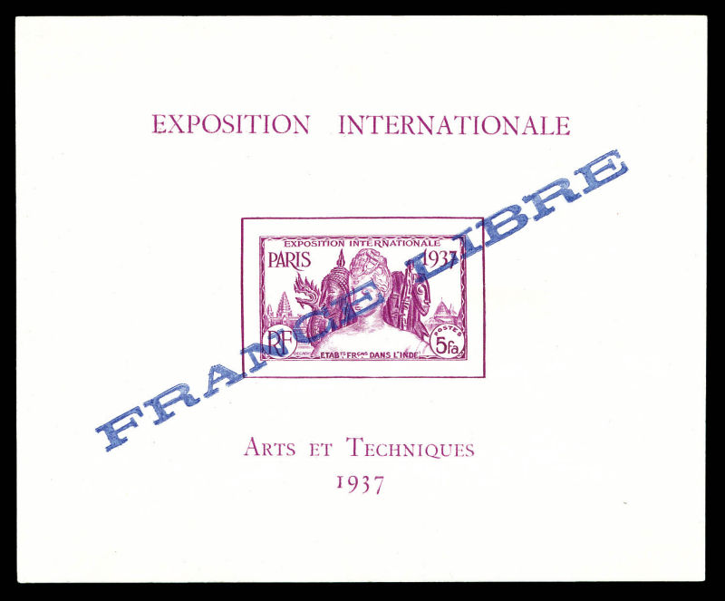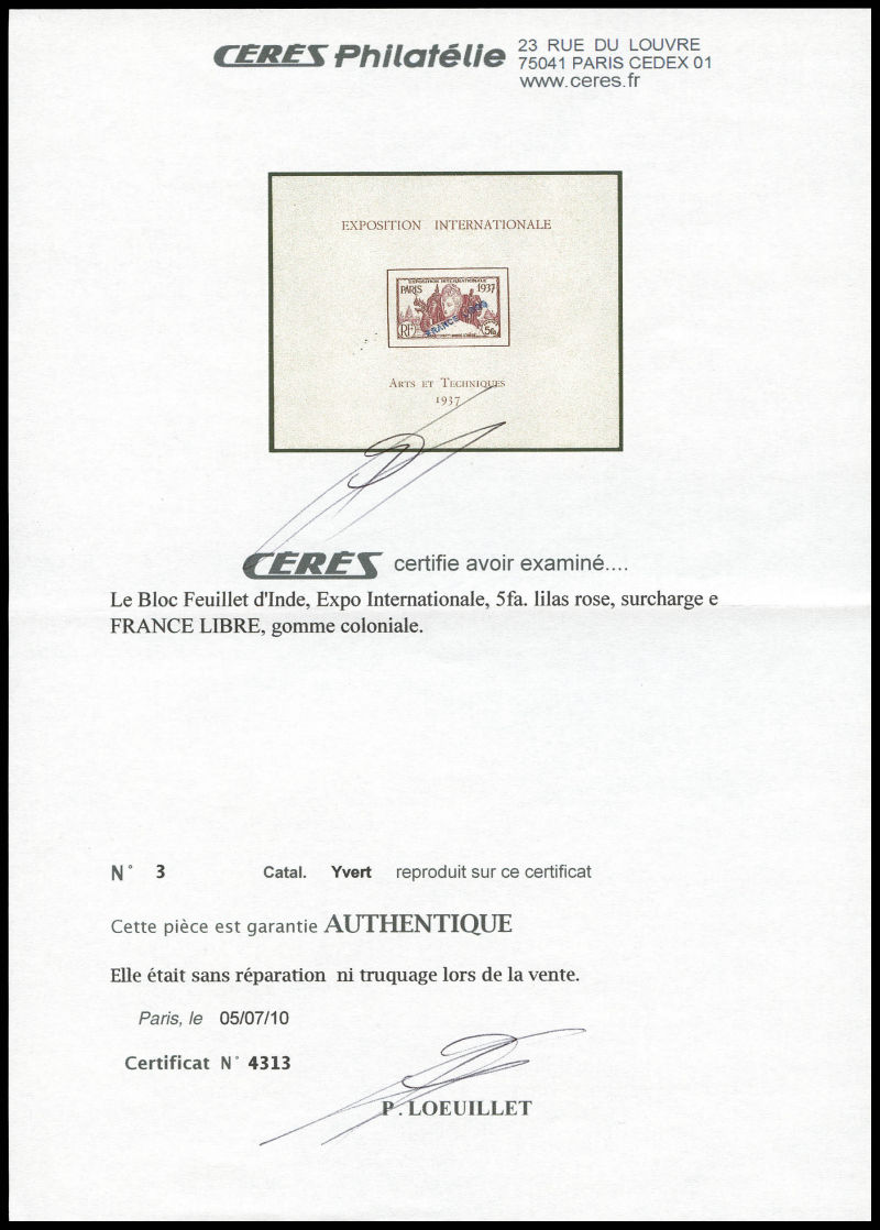 3362 imageN°3, 5 fa lilas-rose surchargé FRANCE LIBRE. SUP. R. (certificats) Qualité: * Cote: 1250 euros (Image) (image2) (All Images)