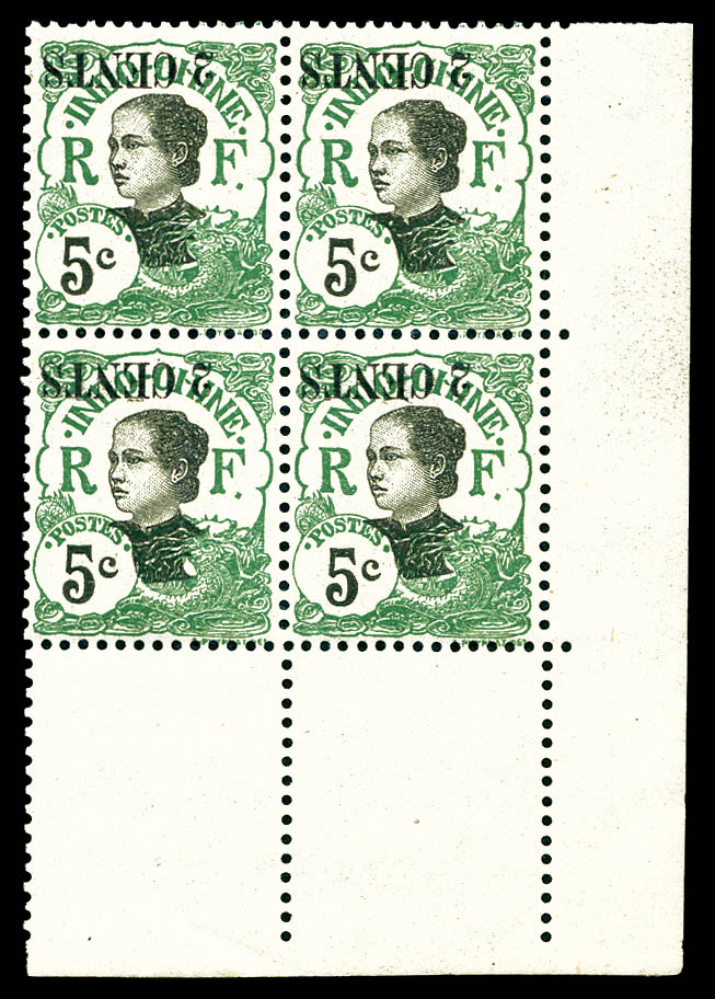 3368 imageN°75a, Surcharge renversée en bloc de quatre cdf, quasi **. SUP (certificat) Qualité: * Cote: 920 euros (Image) (image2) (All Images)