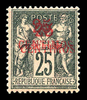 25c noir sur rose: double surcharge. SUP (signé Brun/certificat) Qualité: ** Cote: 760 euros (Image)